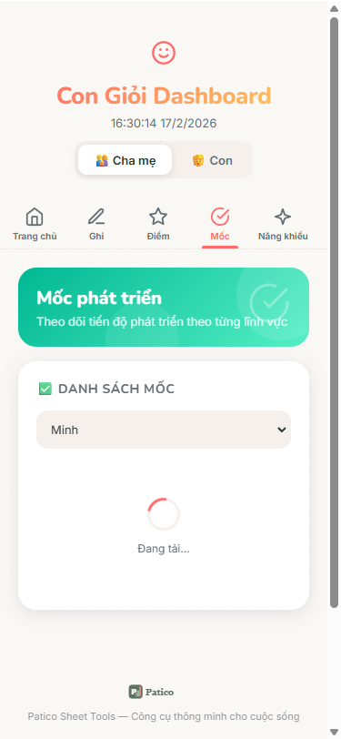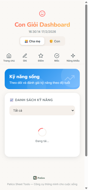 Con Giỏi Dashboard là công cụ theo dõi phát triển toàn diện dành cho trẻ từ 0 đến 18 tuổi, được xây dựng trên nền Google Sheets và Apps Script. Không cần cài đặt phần mềm — chỉ cần một tài khoản Google, bạn đã có ngay hệ thống quản lý con với đầy đủ: nhật ký hành vi, điểm thưởng, mốc phát triển, phân tích năng khiếu Gardner và nhiều hơn nữa. Bài viết này hướng dẫn chi tiết từng tính năng để bạn tận dụng tối đa công cụ.