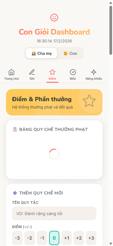 Hệ thống điểm thưởng là “trái tim” của Con Giỏi — giúp bạn xây dựng văn hóa gia đình dựa trên sự ghi nhận tích cực thay vì chỉ phạt.
