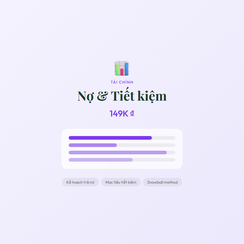 Tra no co ke hoach + tiet kiem co muc tieu. Snowball/Avalanche method, savings goals.