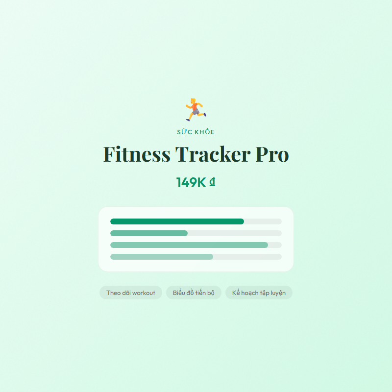 Ghi lai moi buoi tap, theo doi can nang, so do, bieu do tien trinh. Phu hop gym, yoga, chay bo.